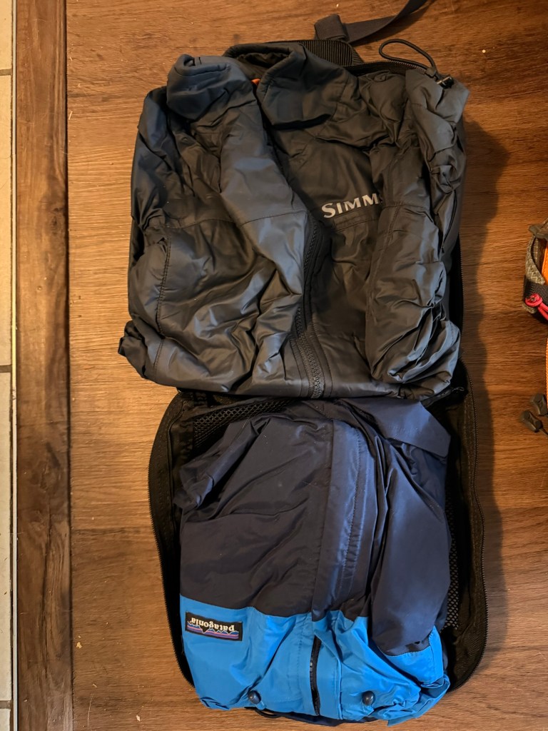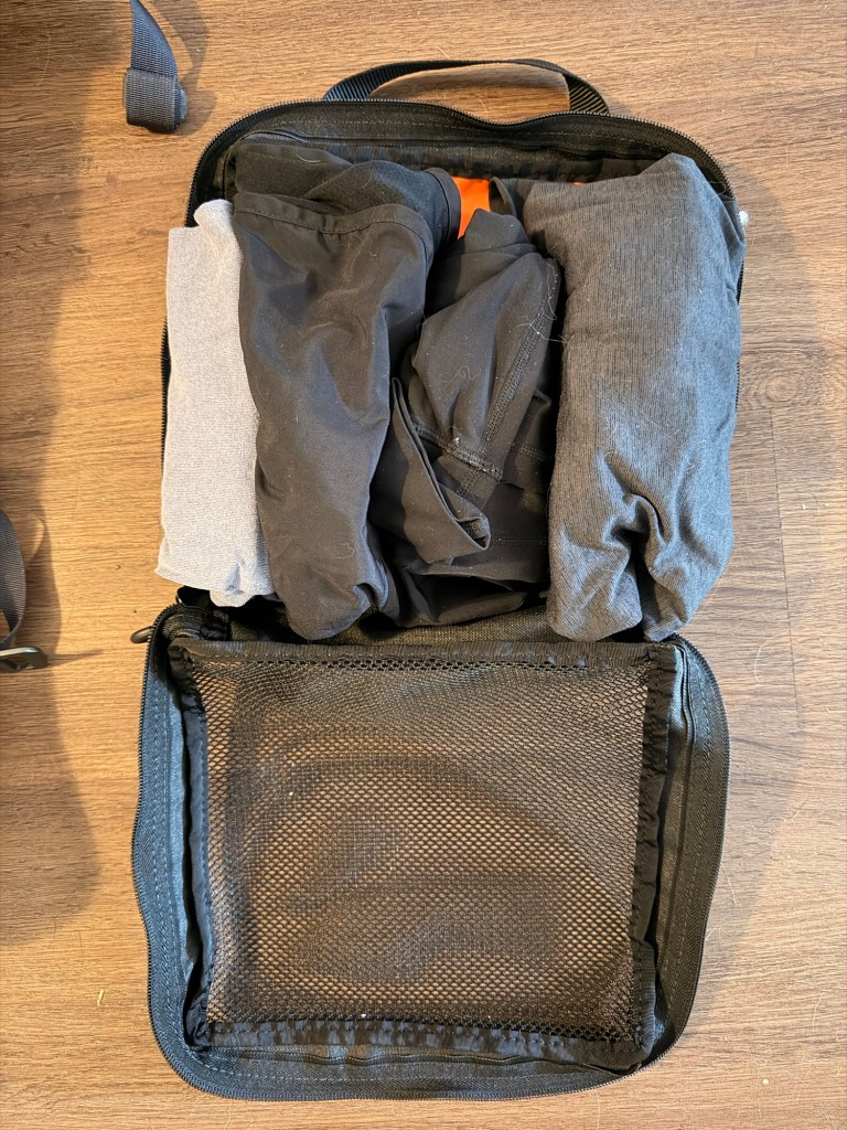 Under Seat Storage-I have some Blue Ridge Overland Gear mesh packing cubes that fit under my seats. One of the packing cubes is all my change of clothes. In that cube is shorts and a t-shirt, (both synthetic material) leggings and a long sleeve (both synthetic material). I chose synthetic because it makes the most sense to have in Colorado. We have sunshine for 300 days out of the year and synthetic is known for being quick drying during and after being active. I have also utilized these as a change out of work clothes for a happy hour and non-adventure-based tasks. The other packing cube has extra layers. In there is Patagonia Torrent shell 3L rain jacket and a Simms synthetic puffy jacket. These cubes also fit inside the Vertx backpack if needed.